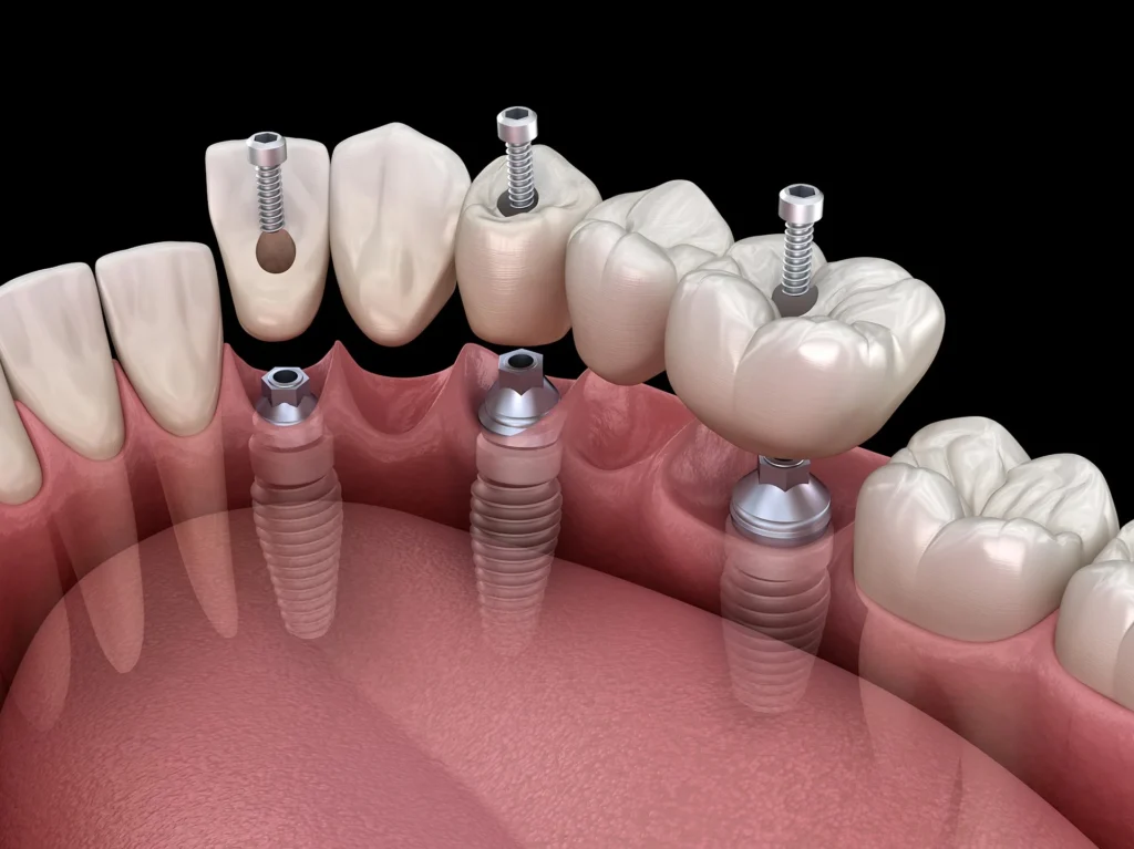 La fase chirurgica dura in media 30-60 minuti per impianto. La protesi provvisoria viene fissata entro 24-72 ore. Dopo 2-3 mesi, se l’osteointegrazione è stabile, si passa alla protesi definitiva.