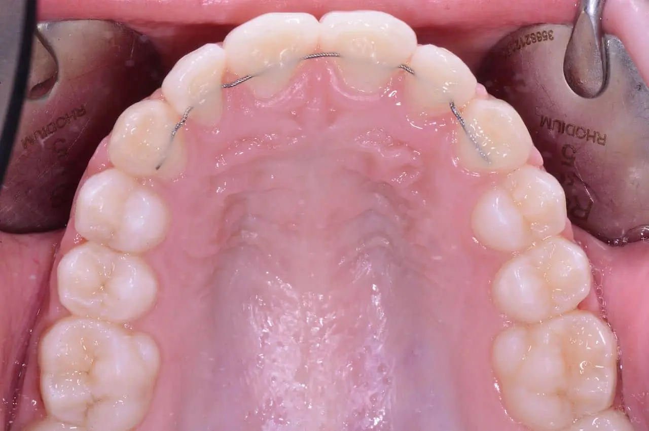 Il retainer fisso è costituito da un filo metallico che viene fissato dietro gli incisivi superiori o inferiori. Il filo viene incollato utilizzando una resina speciale e può essere nascosto dietro i denti, risultando quasi invisibile. Il vantaggio principale di questo tipo di retainer è che non richiede alcuna collaborazione da parte del paziente, poiché rimane fisso e non può essere rimosso.